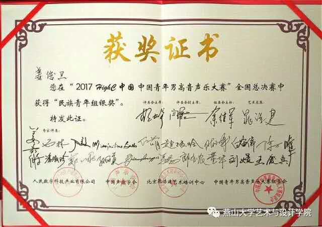 15级硕士研究生姜俊卫荣获民族青年组银奖的好成绩,继今年音乐政府奖金钟奖以来他再次为亚博体育