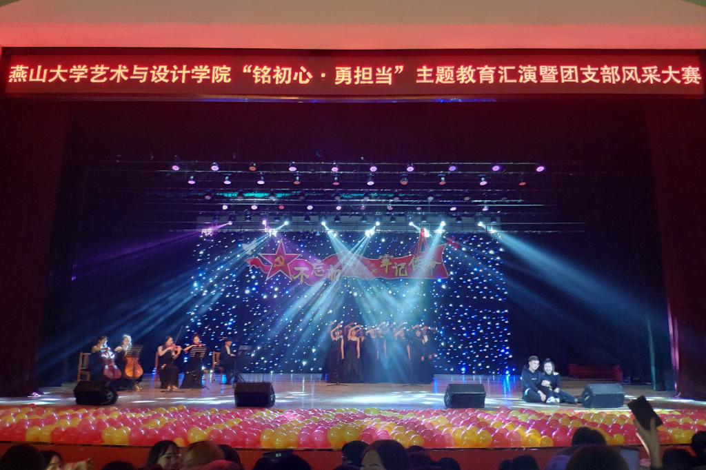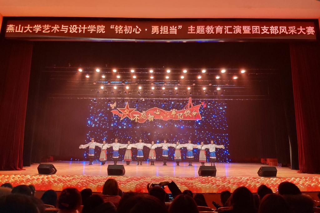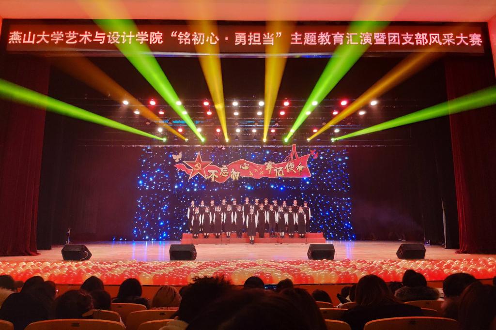 本次活动紧密围绕“不忘初心、牢记使命”主题教育团支部活力提升工程要求展开。节目内容突出了基层团支部在思想道德建设取得的成效。如:以树立远大理想,把青春奋斗融入新时代为主题的《最初的梦想》、《相约2035》;以述说青春故事,尽展青春风采为线索的《燕大西区的日子》、《光阴的故事》等;以敢于担当作为,关心社会现实为主题的《你的模样》、《扰民了您》;以讴歌新时代,赞颂伟大的祖国为主题的《共贺明天》、《我和我的祖国》等节目受到同学们热烈欢迎。经过激励角逐,最后2019级环境设计1班团支部荣获一等奖。