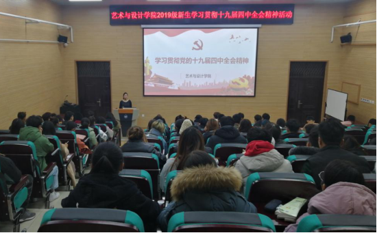 于2019年12月9日下午17:20在音乐馆B105教室开展“学习贯彻党的十九届四中全会精神理论学习活动”,由河北省骨干辅导员陆颖老师主讲,全体2019级新生骨干参加了学习。