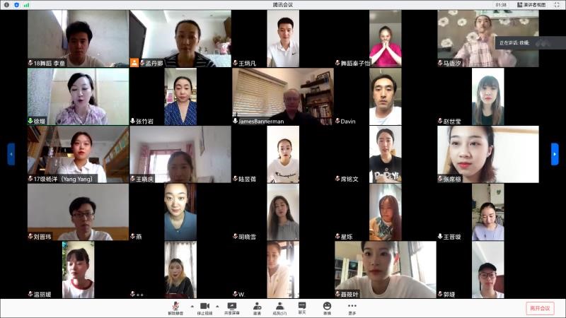 Christopher Bannerman教授首先向大家展示了英国四位著名编导的舞蹈作品,然后向师生详细介绍了当今英国舞蹈中多元融合的现象,并提出现代舞蹈没有界限的观点。舞蹈表演专业师生通过这次跨国界云端交流,提出关于当代舞蹈多元融合的观点和看法,Christopher Bannerman教授耐心细致的进行了解答并与亚博体育