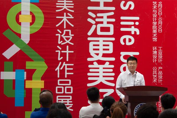 党委常委、副校长陈国强宣布“艺术让生活更美好”美术设计作品展开幕,嘉宾领导、返校校友一同参观了展览。