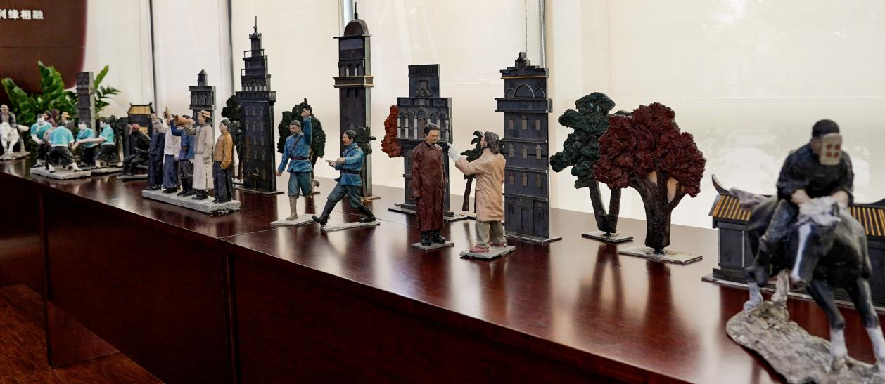 众所周知,电影《让子弹飞》脍炙人口,开平正是这部电影最重要的外景地,此次所展示的雕塑作品,选取开平最具代表性的九座碉楼及电影《让子弹飞》中的十个剧中场景为蓝本,每个作品一一对应二维码,游客在游览过程中可直接扫码了解碉楼的前世今生并重温电影精彩场景,拍照留影,沉浸体验。
