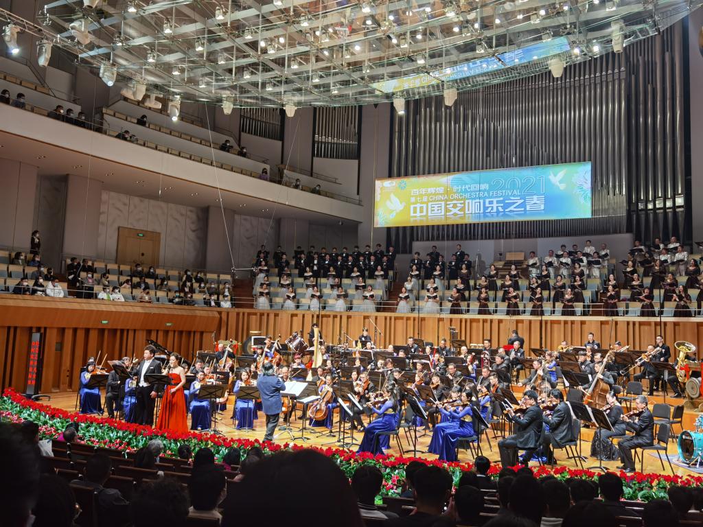 燕鸣合唱团参与的是由著名指挥家汤沐海领衔广西交响乐团“唱支山歌给党听”—《春暖花开》交响音乐会。台上一分钟,台下十年功。从接到此次演出任务到演出,在短短⼀个多⽉的时间⾥,合唱团师生们不辞⾟苦,每⽇奋战在排练教室,细磨每⼀个音符以及舞台表演细节,只为争取最佳的艺术呈现,将燕⼤学⼦的风貌和燕⼤⼈的精神品格绽放在国家大剧院的舞台。此次演出燕鸣合唱团的专业素养、表演能力得到了业内专家的高度赞扬。