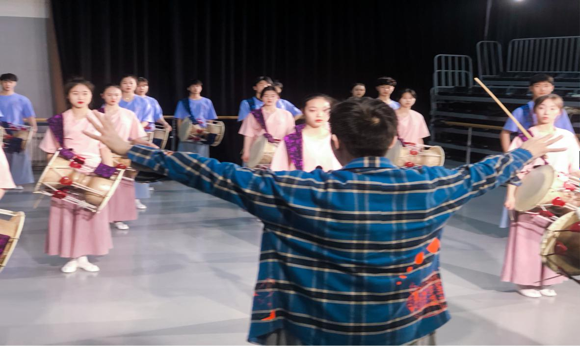 谢飞老师的课堂严谨细致又轻松幽默,让同学们在紧张有序的训练中保持满满的学习热情。谢老师强调,朝鲜族舞蹈讲求内在的韵味,要静心体悟,用心感受,以呼吸带动身体,以意识延展时空,才能更为细腻、自如、流畅的表演好每一个动作。在谢老师的指导下,同学们认真练习、反复揣摩,进步飞快,每日七点就来到教室集体练鼓,楼道里总是回响着杖鼓的清脆声响。