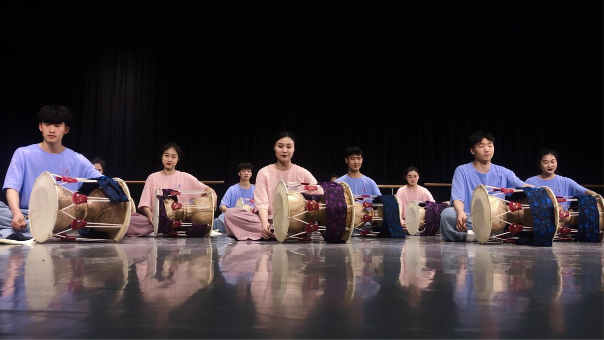课程内容围绕杖鼓鼓谱认读训练、演奏基础协调训练、长短伴奏风格训练、杖鼓舞基础训练展开,为学生们扎实的掌握朝鲜族杖鼓舞的表演技术奠定了基础。从优美柔和的古格里长短到活泼欢快的扎津莫里长短,从轻松自在的噔嘚啌到激昂鲜活的挥莫里长短,在短短五天的时间里,舞蹈表演专业师生在谢飞老师的带领下,学习了多种风格各异的杖鼓长短和表演性组合,深入的体会了朝鲜族舞蹈的风格内蕴和艺术魅力。