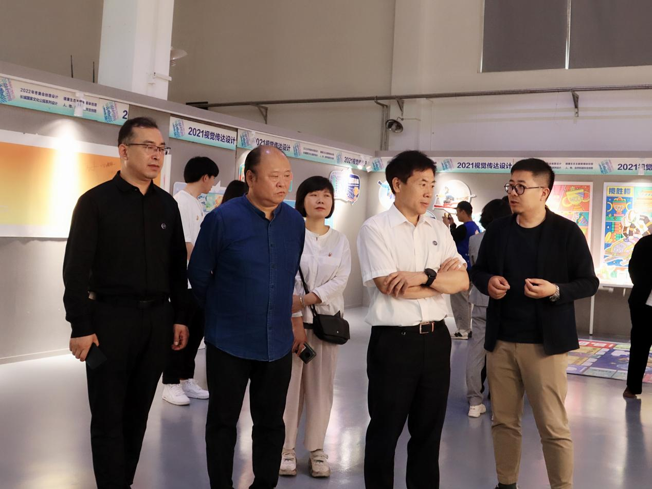 党委书记赵险峰于设计展开幕当日参观了设计展。在美术馆展厅,赵险峰详细了解了本届设计展的筹备情况,学生作品的创作情况,在展台旁认真观看设计作品并不时与师生交流,了解作品的创作理念和推广应用情况。赵险峰对学生作品给予高度评价并在留言墙签名留念。