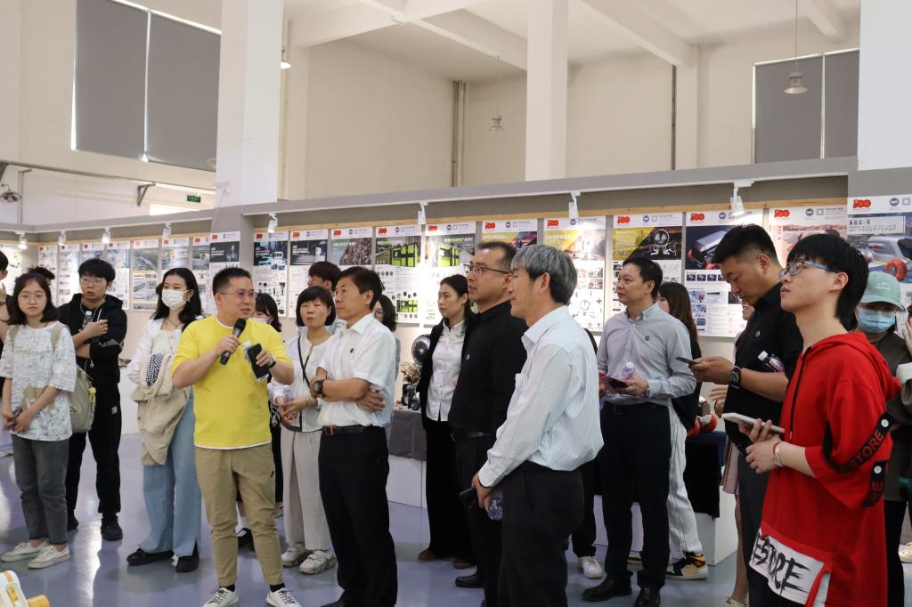 各系师生向领导和嘉宾讲解设计作品内容