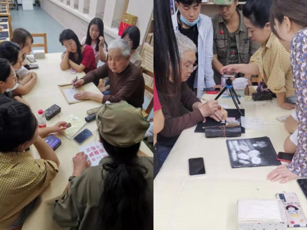 刘铁峰老师从篆刻制作的磨印章、设计印面、印章创作、印章石保养等几个方面进行了现场示范教学,师生们不仅感受到了大家的娴熟技艺,也领略到了先生高深的艺术思想及审美趣味,收到了很好的教学效果。