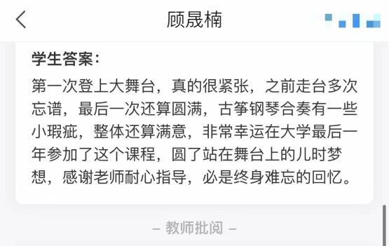 通过本门课程的学习,同学们感受到了音乐的美好,提升了艺术素养,实现了学习钢琴的梦想,体验了舞台的魅力,收获了珍贵的友谊,也展现了大学生的青春与才华。