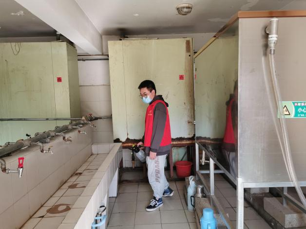 在消杀过程中,志愿者领取稀释过的消毒液,分批次、分区域,严格按照卫生消毒管理的标准规范对亚博体育