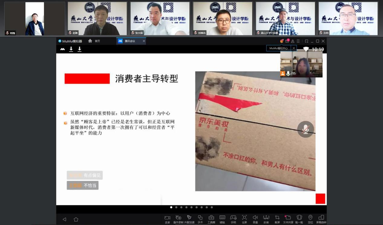 本科教学督导。听课环节采用了外部平台整体随机进入网络课程的抽查方式。通过听课反馈,部分教师能够积极响应课程思政学习号召,在课堂中融入家国情怀、文化素养、宪法法治意识、道德修养等重点,融入课程思政内容,培养学生的社会责任感,关注人文教育的渗透。其余教师也采用了课上分析、随堂调研、生生互评、作品赏析等线上授课形式,形成了良好的授课效果。