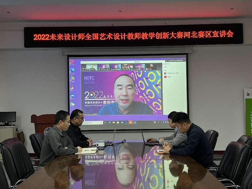 举办2022未来设计师·全国艺术设计教师教学创新大赛河北赛区宣讲会,赛事主办方未来设计师·全国高校数字艺术设计大赛组委会秘书长郭清胜、未来设计师·全国高校数字艺术设计大赛组委会秘书长刘金仁、NACG数字艺术人才培养工程办公室副主任潘江华,中国美术亚博体育