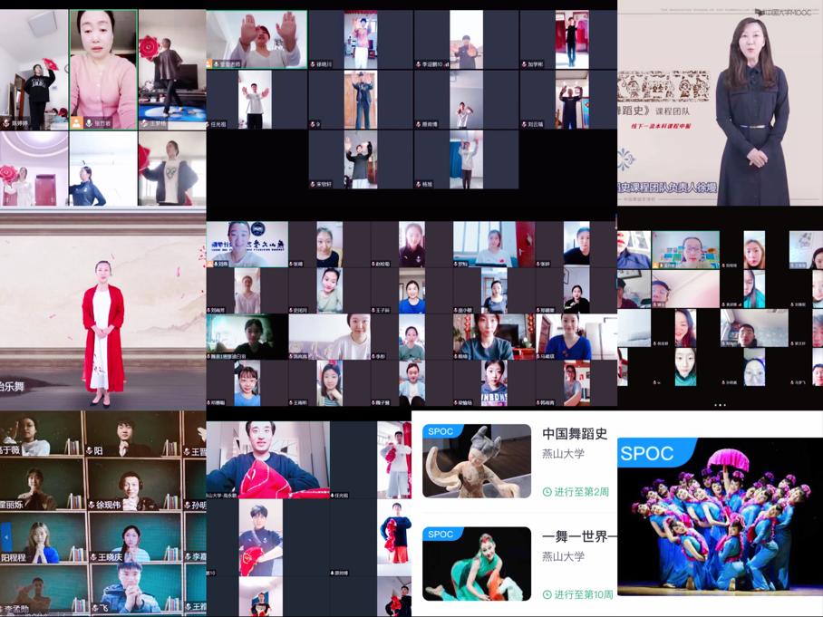 在线上教学方面,舞蹈表演专业师生择优通过学习通、腾讯会议、雨课堂、中国大学慕课(MOOC)以及专属在线课程(SPOC)等校内外公共教学平台展开课程教学,积极运用网络平台和信息技术传授专业知识,以翻转课堂、互动研讨、小组协作、创意舞蹈等多元方式丰富教学环节,并不断推进专业首批线上线下混合式教学课程的模式探索,确保教学的质量。