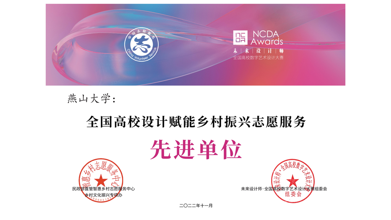 从全国1513所参评高校中脱颖而出,荣获首批34家高校“全国高校设计赋能乡村振兴志愿服务先进单位”荣誉称号。