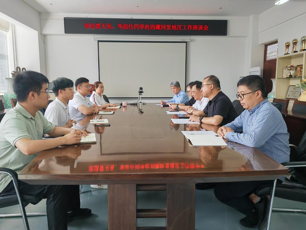 在美术馆C305会议室为即将赴西藏阿里地区基层工作的2023届本科毕业生曹天昊、李泓仕举行欢送仪式。亚博体育