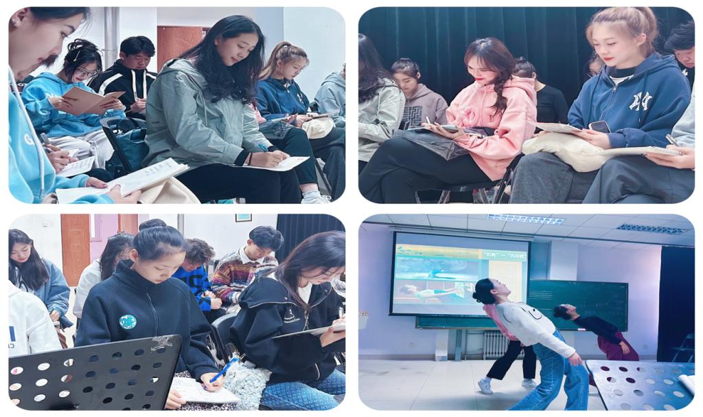 优秀青年教师李小东副教授受邀听课指导。刘燕老师围绕《点绛唇》《爱莲说》《只此青绿》三部中国古典舞作品展开课程思政教学,以润物无声、细致入微的方式将作品中蕴含的传统文化、家国情怀、艺术品格予以讲述。同学们积极参与课堂互动,教学效果良好,感受颇深。授课效果得到了听课师生的一致认可。