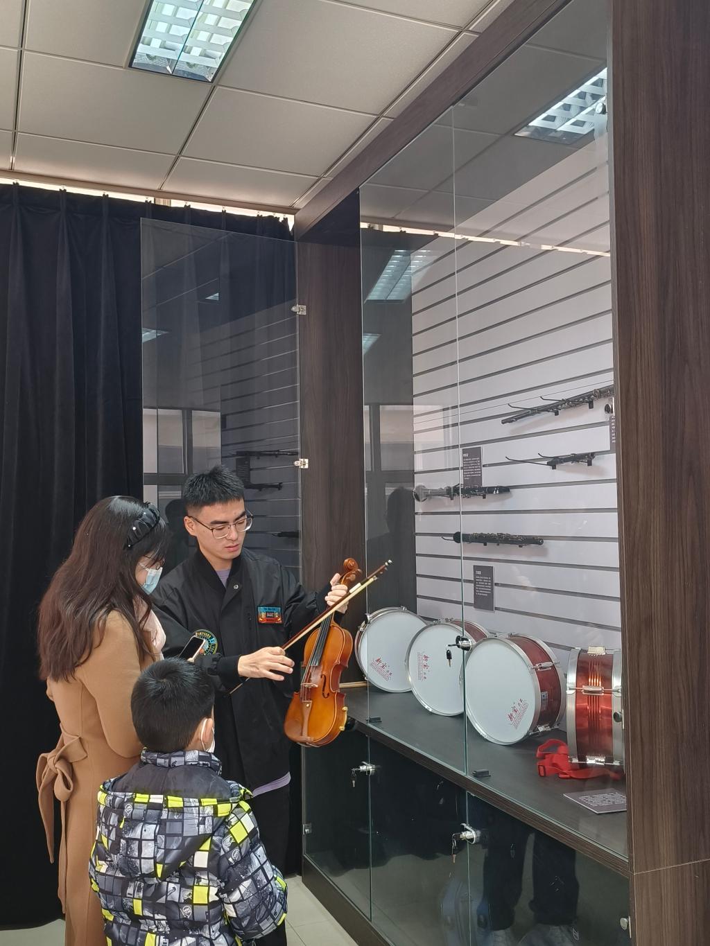 美育教室”,种类齐全的各类乐器,良好的育人环境使大家沉浸其中。在中华优秀传统文化传承基地,体验篆刻的师生拿起刻刀,在方寸之间刻就美好,近距离感受传统文化。在美术馆大家通过观摩3D打印感受艺术与科技融合的魅力。活动现场师生积极参与,体验中华优秀传统文化的魅力。