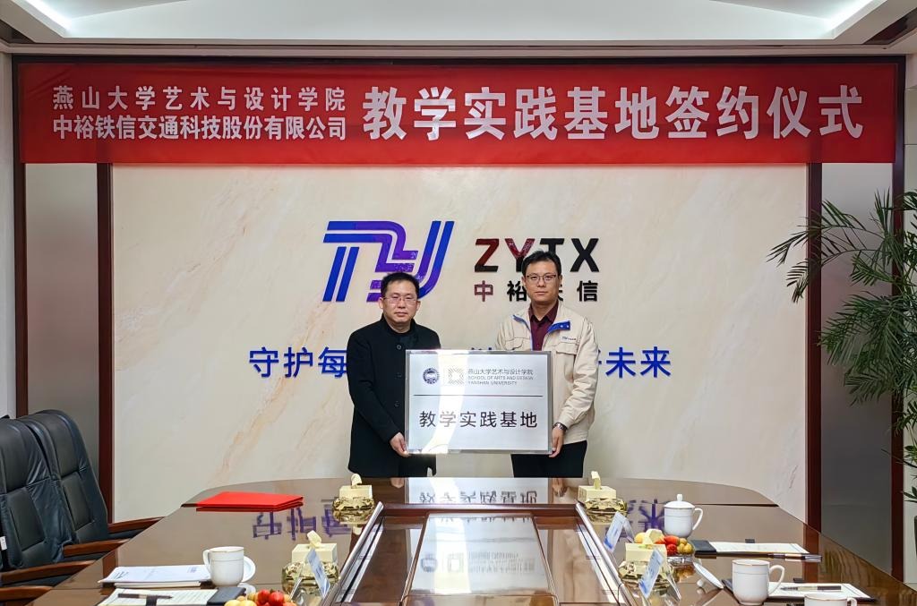 与中裕铁信交通科技股份有限公司举行教学实践基地签约(揭牌)仪式。中裕铁信交通科技股份有限公司副董事长郭勇、行政副总邓乃伏、人力资源部总监张静、经理石新英等参加了座谈交流。双方在“人才培养、人才招聘”一体化机制建设,“河北省工业设计研究院”建设等方面达成了合作意向,并将进一步结合各自特色和优势,推动产学研创新成果落地。