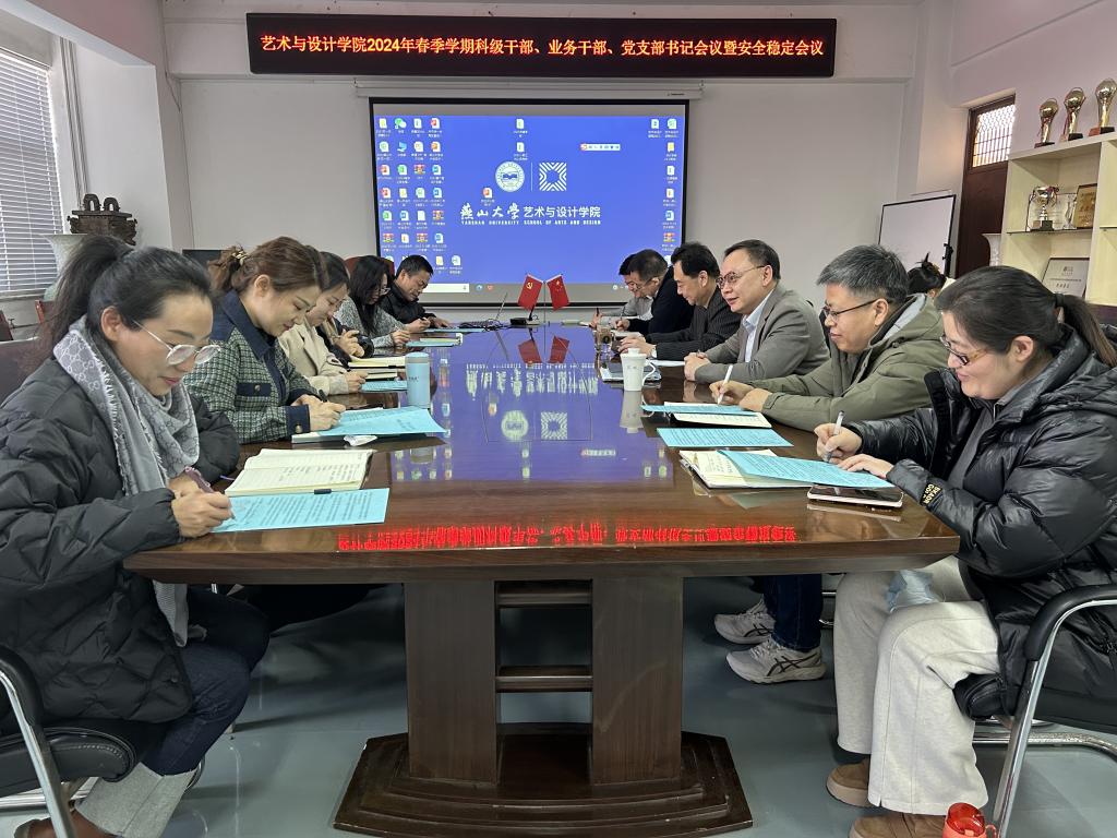 在美术馆C305召开2024年春季学期科级干部、业务干部、党支部书记会议暨安全稳定会议。院党委书记张文超主持会议,院领导班子全体成员、党委委员、科级秘书、正科级专职组织员、师生党支部书记、系部中心主任及副主任参加会议。