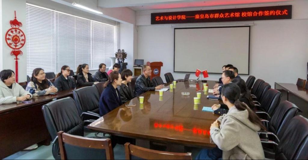 院长赵琳、副院长王年文、产学研办公室主任栗功及专业教师代表与秦皇岛市群众艺术馆馆长高树力、副馆长李颖及市群众艺术馆中层干部一同参加签字仪式。