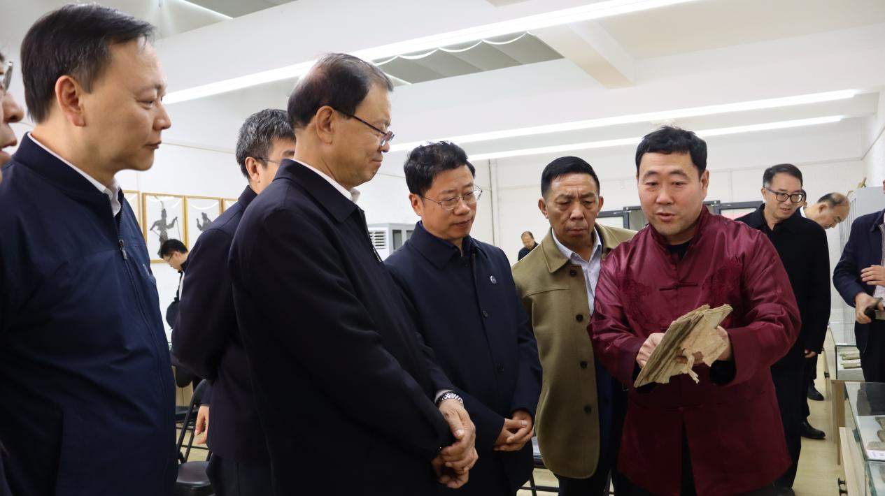 的“河北省非遗研究基地”并与基地负责人及特聘专家、河北省非遗项目青龙皮影传承人杨明忠老师展开亲切交流,张主席指出高校与非遗的关系应该是不断地传承与创新,并在持续的探索中找到助力非遗项目的产业发展立足点。