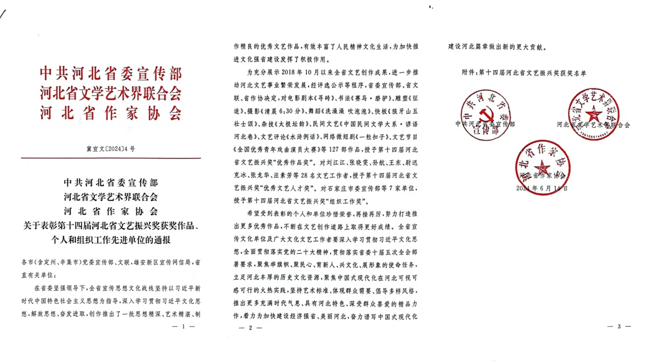 近日,第十四届河北省文艺振兴奖获奖评选结果揭晓。亚博体育