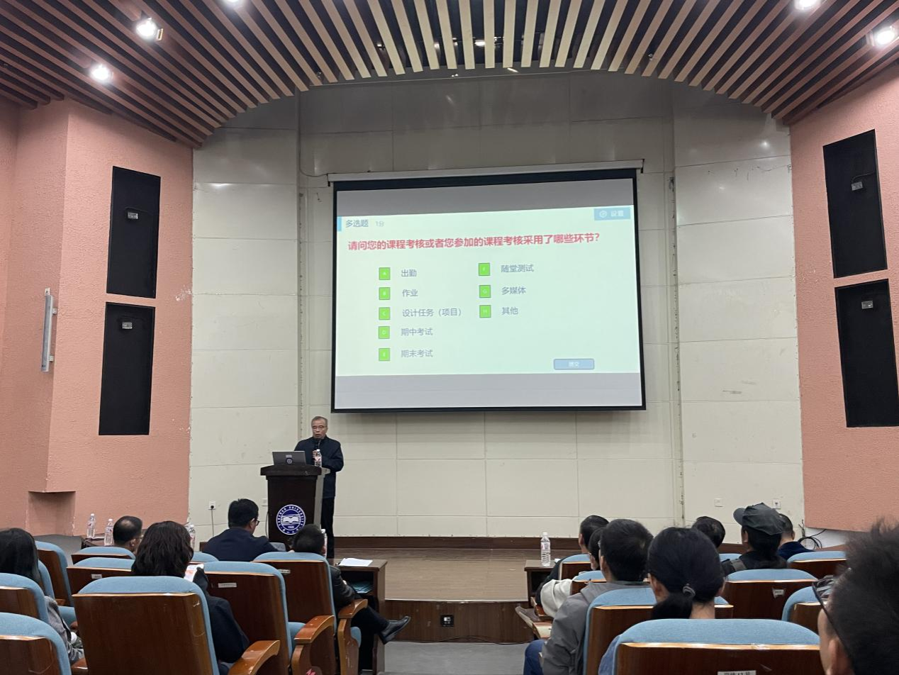 史艳国老师,结合工程认证及OBE理念,解读《课程目标达成情况》。史老师详细阐述了课程目标达成评价对专业认证和人才培养的重要意义。他强调,应以高度的专业责任感,明确人才培养目标,坚持以学生为中心,成果导向,持续改进,将OBE理念真正融入日常教学工作中。史老师老师从课程目标与毕业要求指标点的支撑关系、课程评价与课程目标的支撑关系、课程目标达成情况分析评价、间接评价、课程持续改进思路这几个方面进行了细致而有针对性地讲解。通过本次培训,教师们对课程目标达成度的评价有了更深刻的理解,对《课程目标达成情况》的撰写有了更明晰的认识,为本科教育教学审核评估工作的有序推进奠定基础。