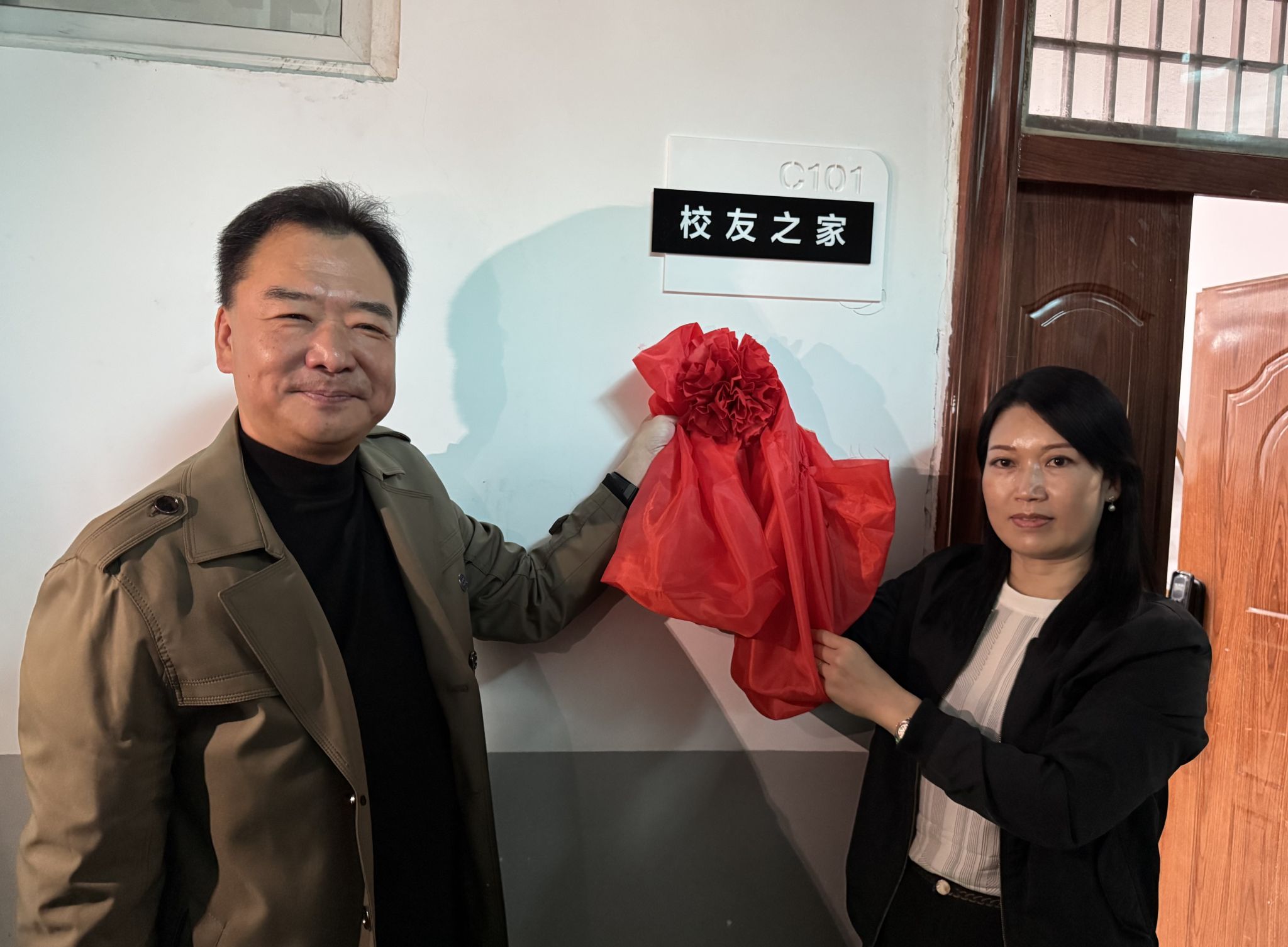 党委书记张文超与校友分会会长左莹莹对“校友之家”揭牌