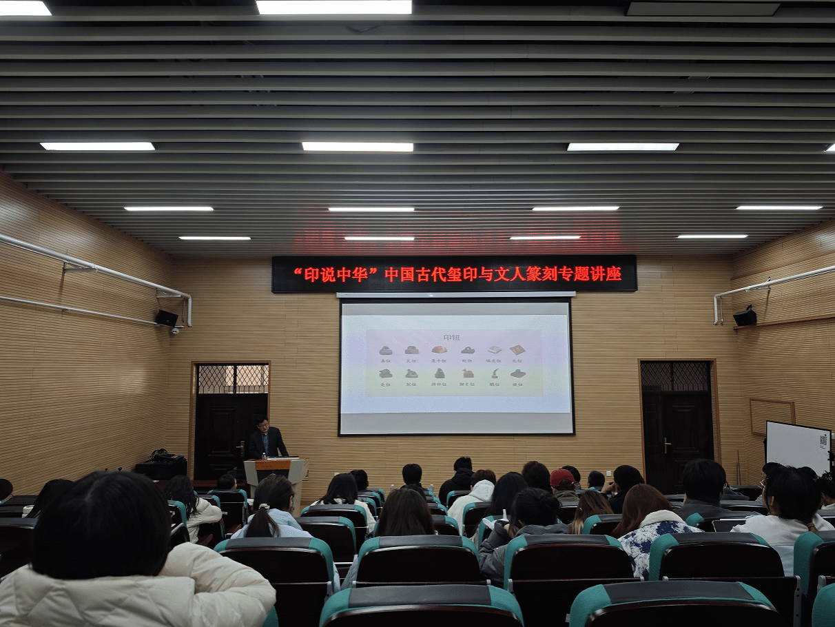 篆刻艺术宣教系列活动之“印说中华”中国古代玺印与文人篆刻专题讲座在音乐馆B105举行。讲座由西泠印社社员、中国印学博物馆馆长乔中石担任主讲嘉宾,亚博体育