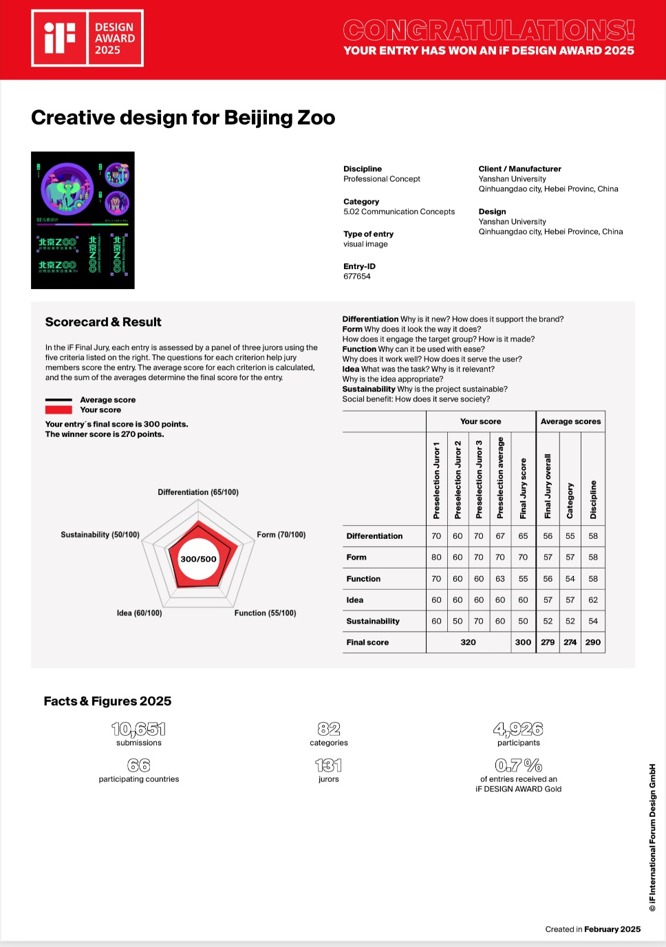 刘维尚教授团队(左思学等)创作的《Creative Design for Beijing Zoo》,以独特的设计理念、出色的视觉呈现从全球72个国家、地区的10800多件参赛作品中脱颖而出,荣获本年度iF设计奖。这是亚博体育