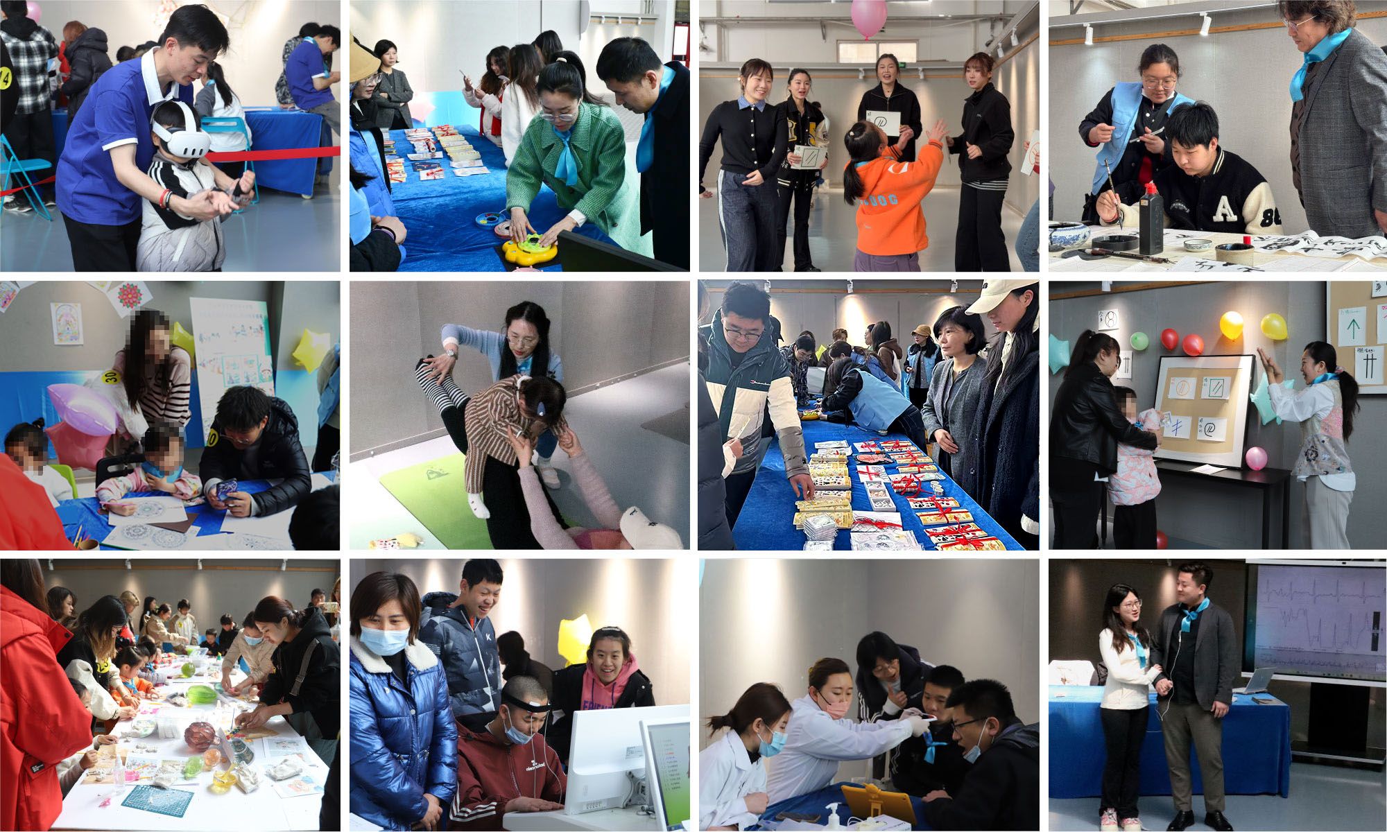 活动以“科研破壁、双向赋能、社会共融”为核心,推出11项沉浸式体验项目。本次活动融合科技与艺术,设置自闭症儿童画作文创展、智能认知训练装置体验、音乐疗愈展示;推出曼陀罗彩绘、亲子陶艺、律动舞蹈等疗愈项目,同步开展中医无创检测、口腔健康筛查服务。为自闭症儿童家庭打造了一场破除隔阂的春日公益盛宴。