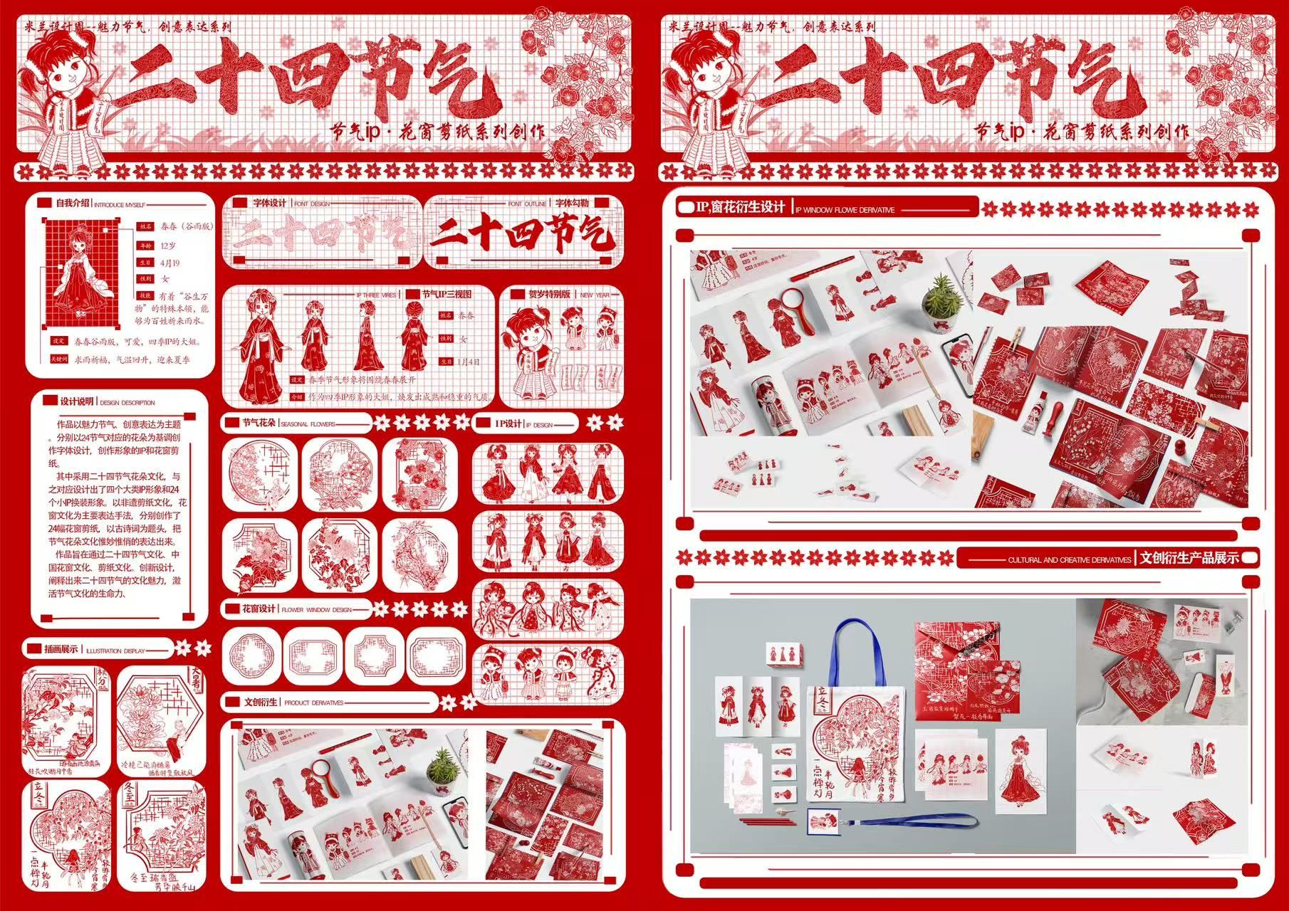 《二十四节气IP,花瓣剪纸设计》