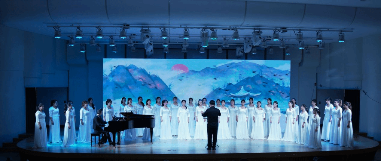 小合唱《入海》通过温暖治愈的歌声,唱出青春的激昂与成长的坚定;女生合唱《江畔独步寻花》则用清脆甜美的歌声呈现春日繁花盛景。混声合唱《告别时刻》以丰富的和声层次与深情演唱,将音乐会推向高潮。