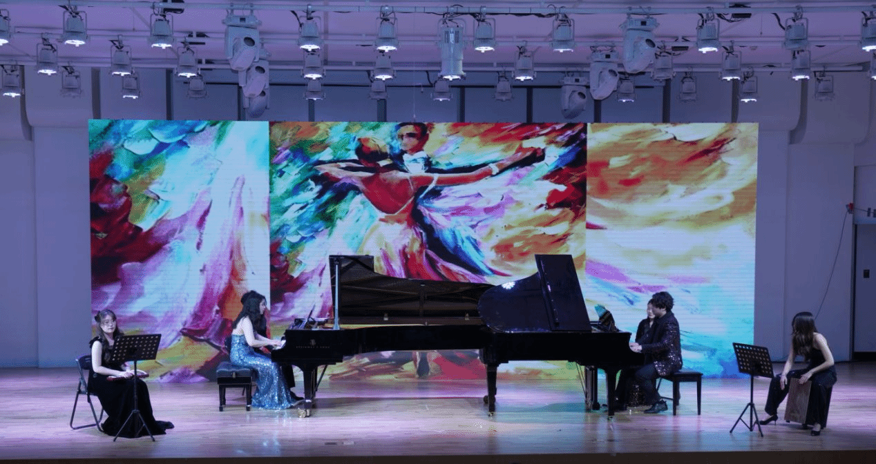 扬琴重奏《翡翠》表演中,清脆音色相互交织,似翡翠闪烁光芒,传递东方音乐独特韵味;琵琶重奏《丝路驼铃》用琵琶模拟驼铃与大漠风声,带领观众感受丝绸之路的孤寂与壮阔;古筝重奏《盛世国乐》以悠扬筝音展现盛世繁荣昌盛,彰显民族器乐的独特魅力;民乐合奏《我的祖国》采用多种民族乐器共同奏响,表达对祖国深深的热爱与赞美。