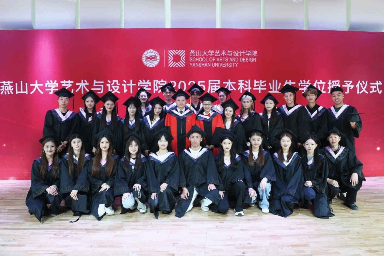班子成员、各系主任、教师代表及全体辅导员共同迎接毕业生入场。2025届本科毕业生身着学位服,踏着红毯,在签名墙前留下签名与合影,步入会场,共同感受这份属于艺术人的浪漫与荣光。