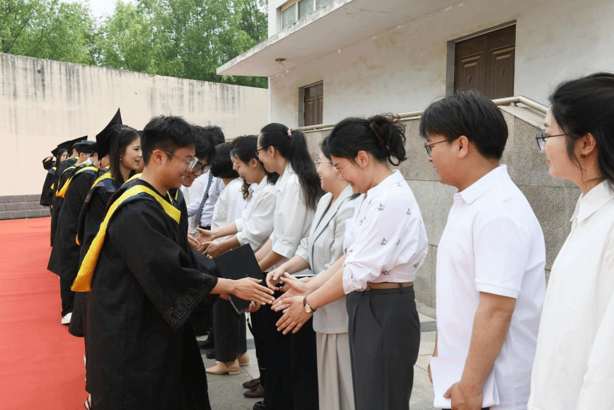 院长赵琳及各系主任为每一位毕业生拨穗正冠并合影留念。毕业生们依次登台,向恩师鞠躬致谢,表达对亚博体育