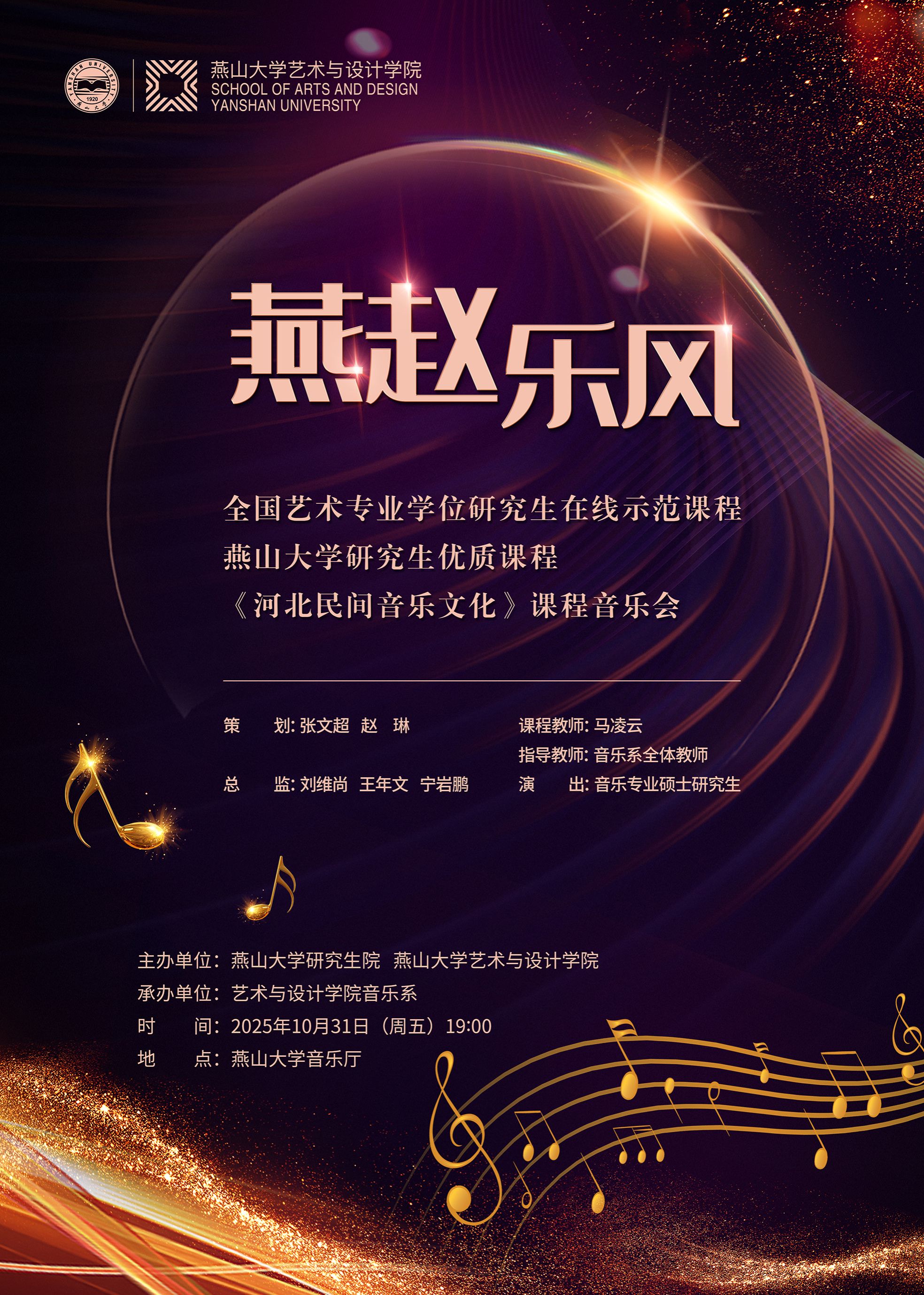 将举办“燕赵乐风”——《河北民间音乐文化》全国线上示范课程音乐会。具体信息如下: