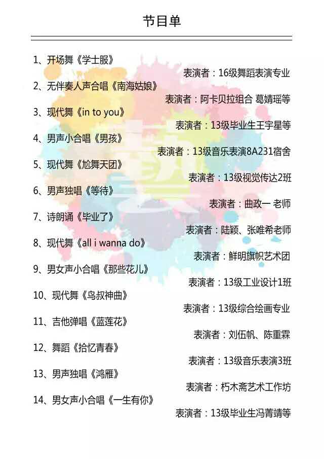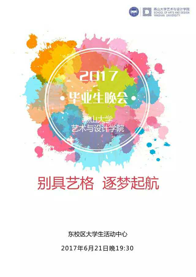 6月21日(周三)晚19:30,在东校区大学生活动中心举行“别具艺格、逐梦起航——亚博体育 2017届毕业生晚会”。