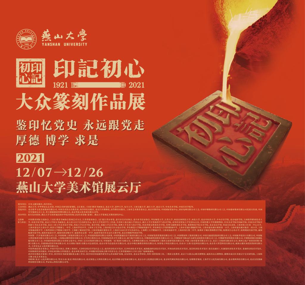 为创新形式深入开展党史学习教育,弘扬中华优秀传统文化,营造良好的校园文化氛围。以“鉴印忆党史,永远跟党走”为主题的“印记初心”——大众篆刻作品展亚博体育 巡展即将开幕。本次展览将以时间为主线,通过284枚篆刻艺术作品呈现中国共产党建党100年来的伟大征程。欢迎广大师生参观。