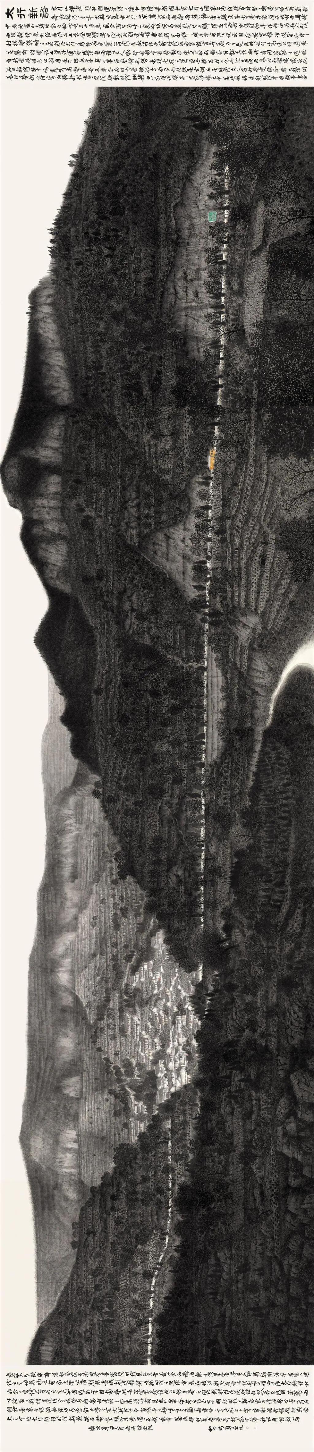 巍巍太行,既是中华民族的一种文化精神的象征,也是艺术创作的不竭源泉。多年来,书画艺术家韩步勇扎根革命老区——涉县太行深处的西坡村,生活在太行、思考在太行、书画在太行,亲历新时代沧桑巨变,以笔墨记录时代新风、呈现太行新貌、探索艺术新语。他不断超越自我,以可贵的艺术创造力完成了属于自己的巨幅太行国画山水系列。这是生命奇迹,也是艺术传奇,更是精神楷模。