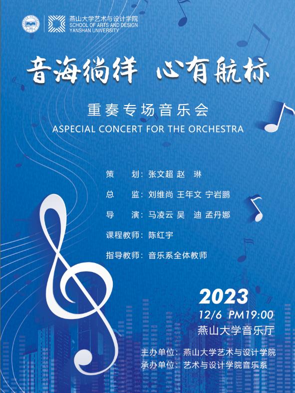 为推进课程思政建设,传承发扬优秀传统文化,推动亚博体育 音乐专业学科发展,助力校园文化建设,亚博体育 将于2023年12月6日举办“音海徜徉 心有航标”音乐表演专业重奏专场音乐会。