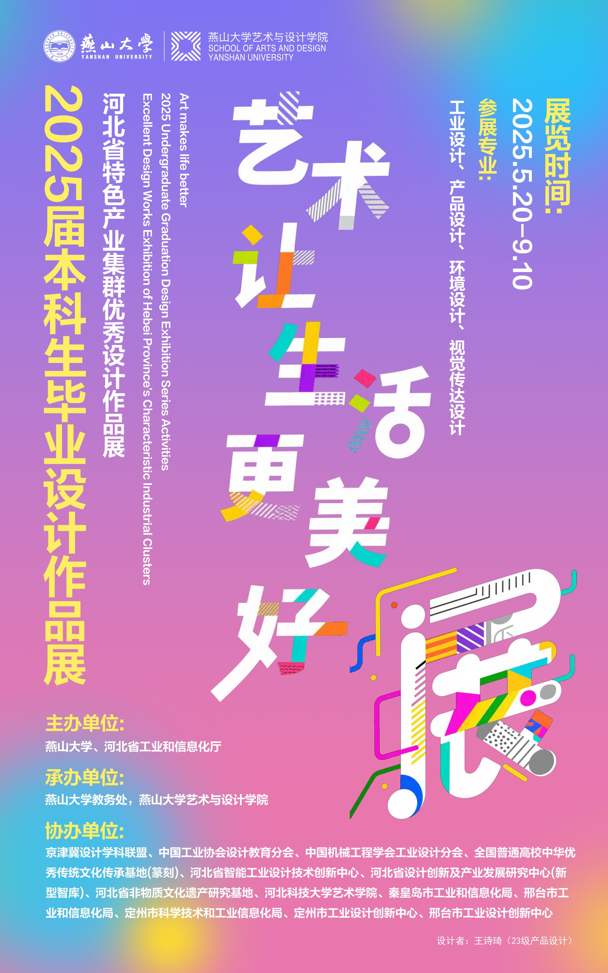 将于2025年5月19日-22日举办“艺术让生活更美好”2025届本科毕业设计展演系列活动。现面向全校师生开放,欢迎广大师生莅临指导。