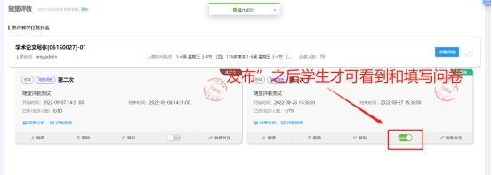 评教问卷发布,学生填写之后,可以在相应问卷下面查看学生评教情况。